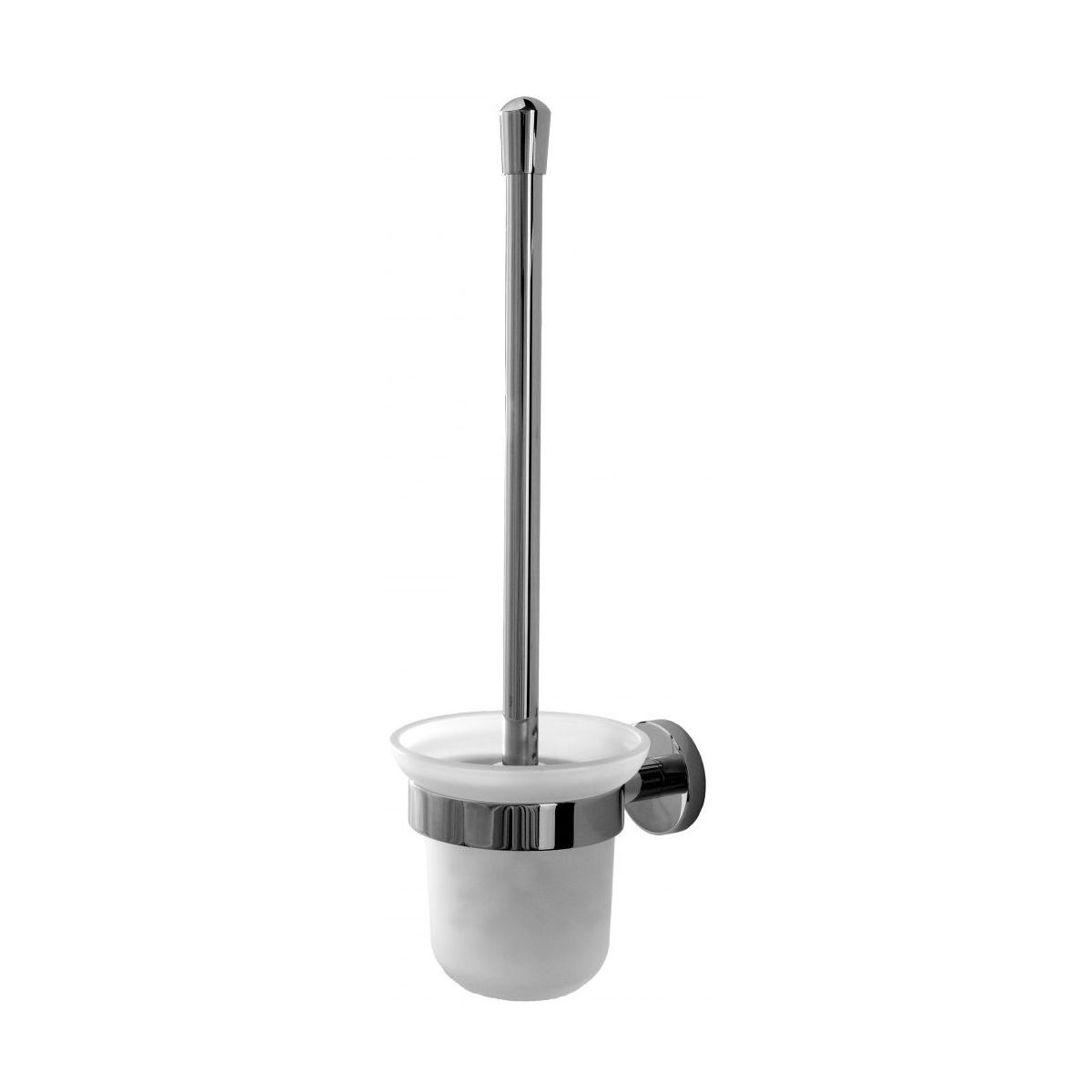 Die an der Wand befestigte Toilettenbürste ist ein Beispiel für eine perfekte Kombination aus mattem Glas und glänzendem Chrom. Die Bürste gehört zu einer eleganten Kollektion von Badaccessoires, die sich durch ein schönes, klassisches Design auszeichnen. Die Accessoires mit sanft abgerundeten Formen sind mit einer glänzenden Chrombeschichtung versehen. Dank ihrer universellen Form passen sie perfekt in jedes Badezimmer.