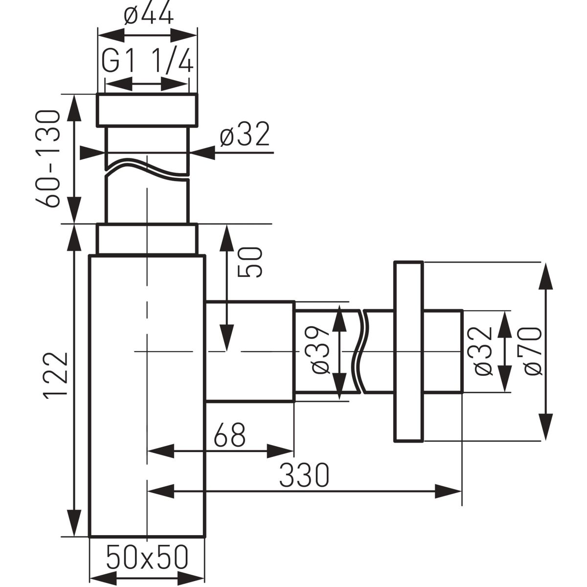 Ferro Quadro Siphon für das Waschbecken flaschen chrom S280