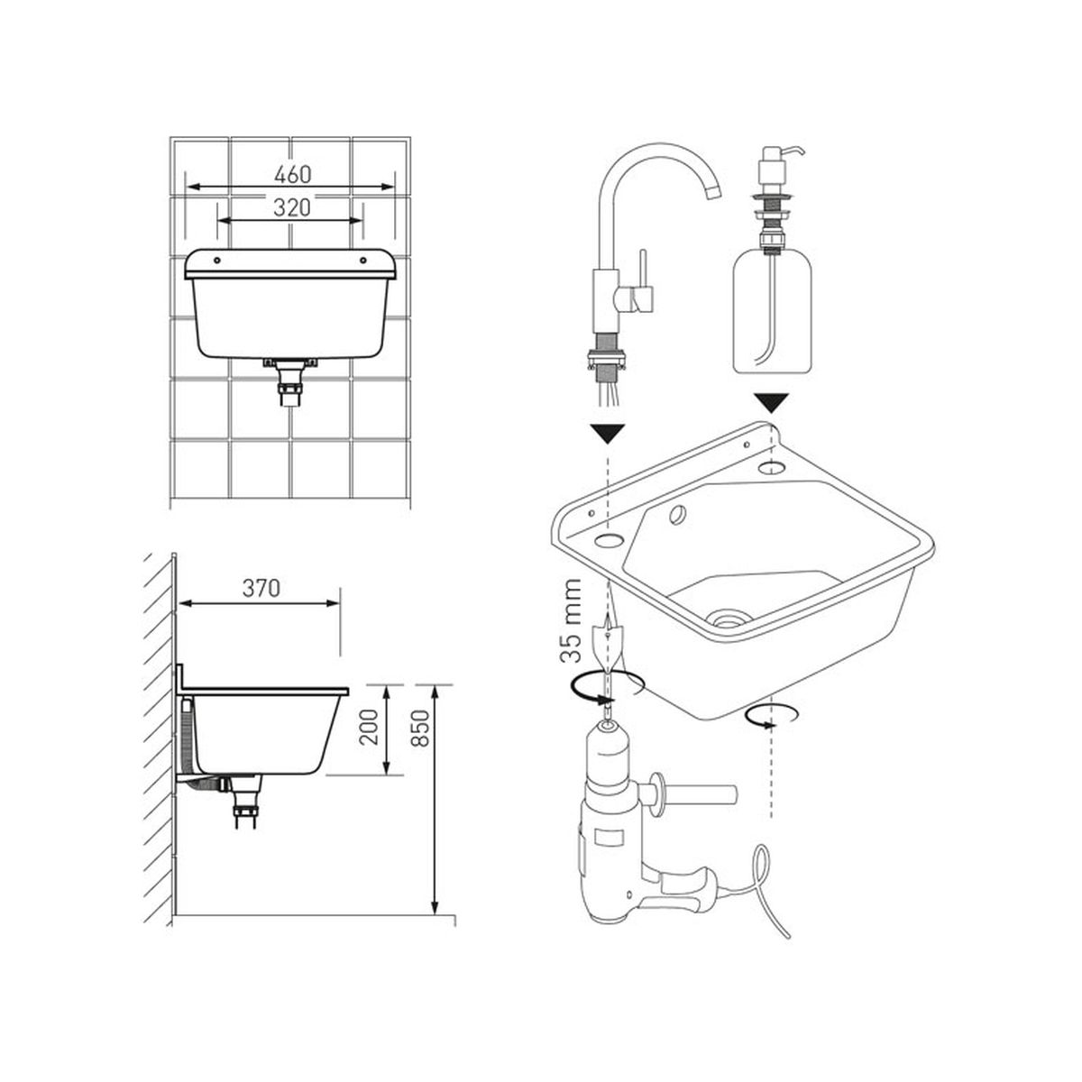 - Möglichkeit der Wandmontage oder Einbau in die Arbeitsplatte
