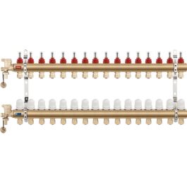 - Art der Ventile am Rücklaufrohr: Thermostatventile mit Drehknöpfen zur manuellen Regulierung, mit Anschlussmöglichkeit für einen thermoelektrischen Kopf M30x1,5