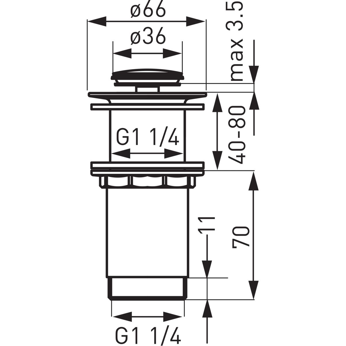 - Hochventil G 1¼ für Aufsatzwaschbecken