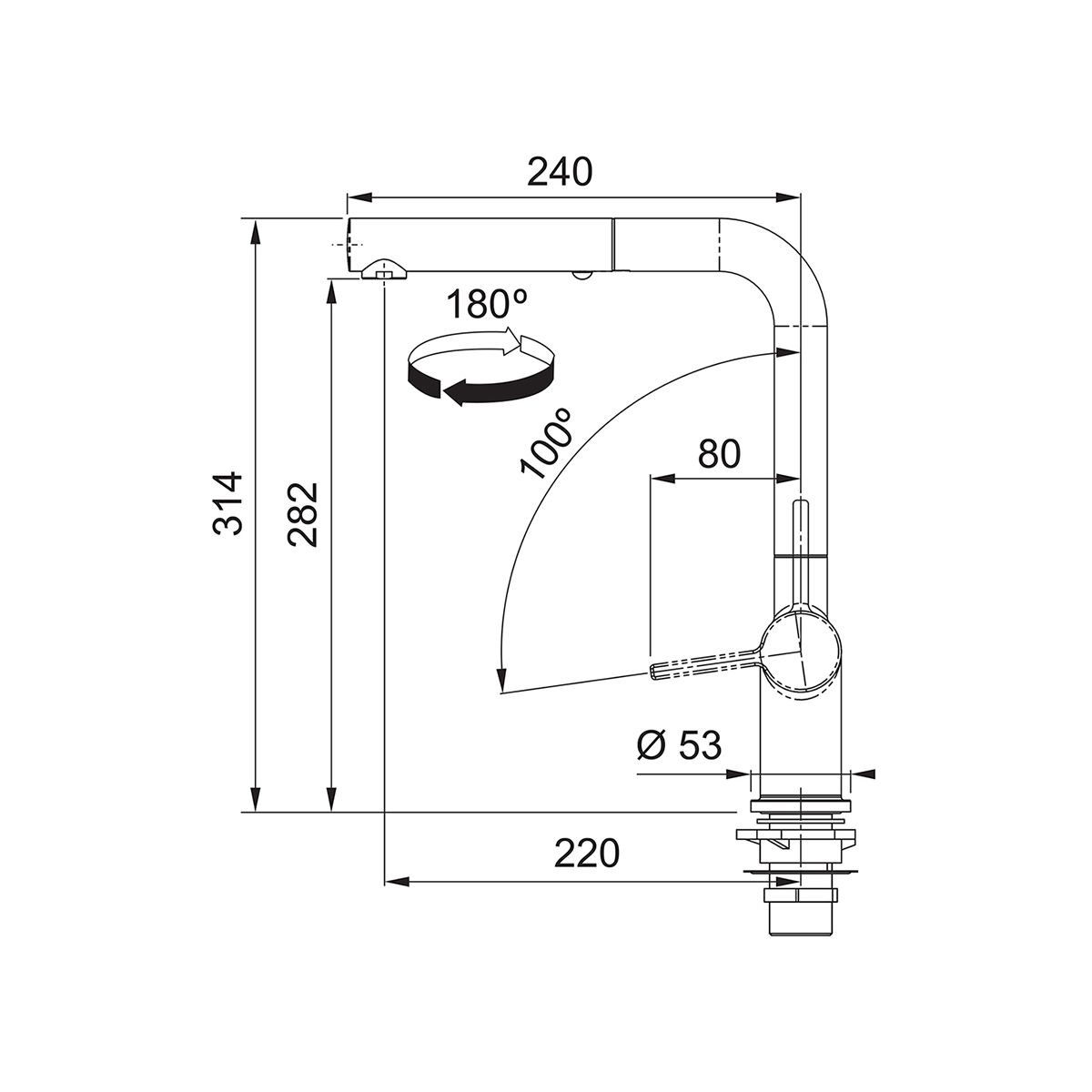 - drehbarer Auslauf mit einem Drehwinkel von 180º
