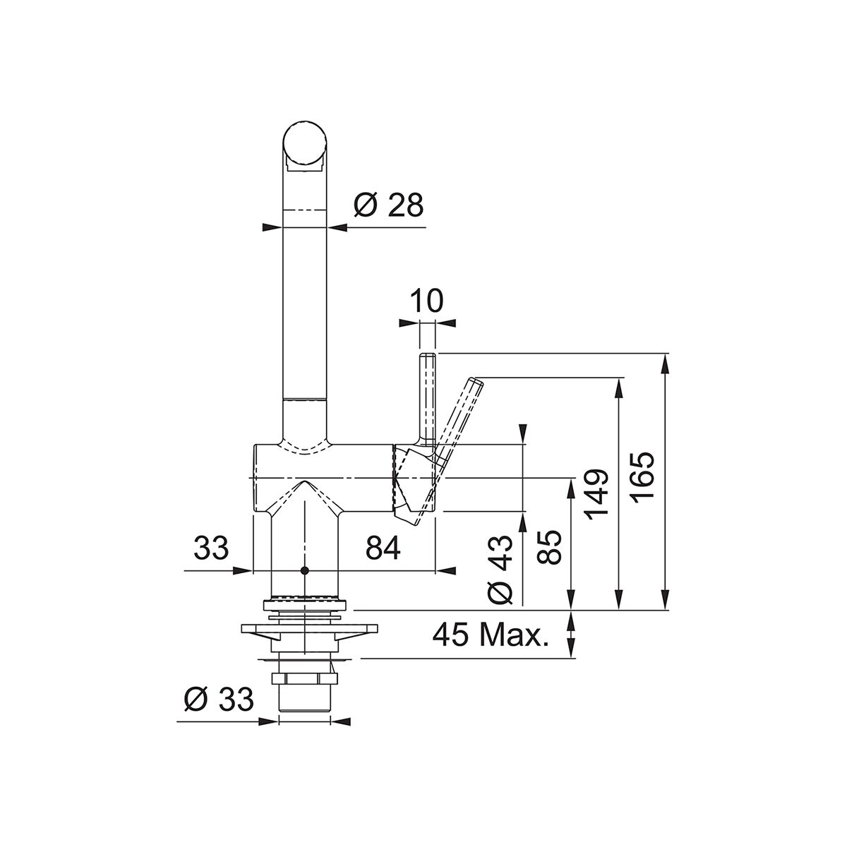 - Höhe bis zum Ende des Auslaufs: 28,2 cm