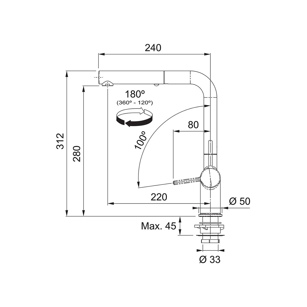 - Höhe bis zum Ende des Auslaufs: 28 cm