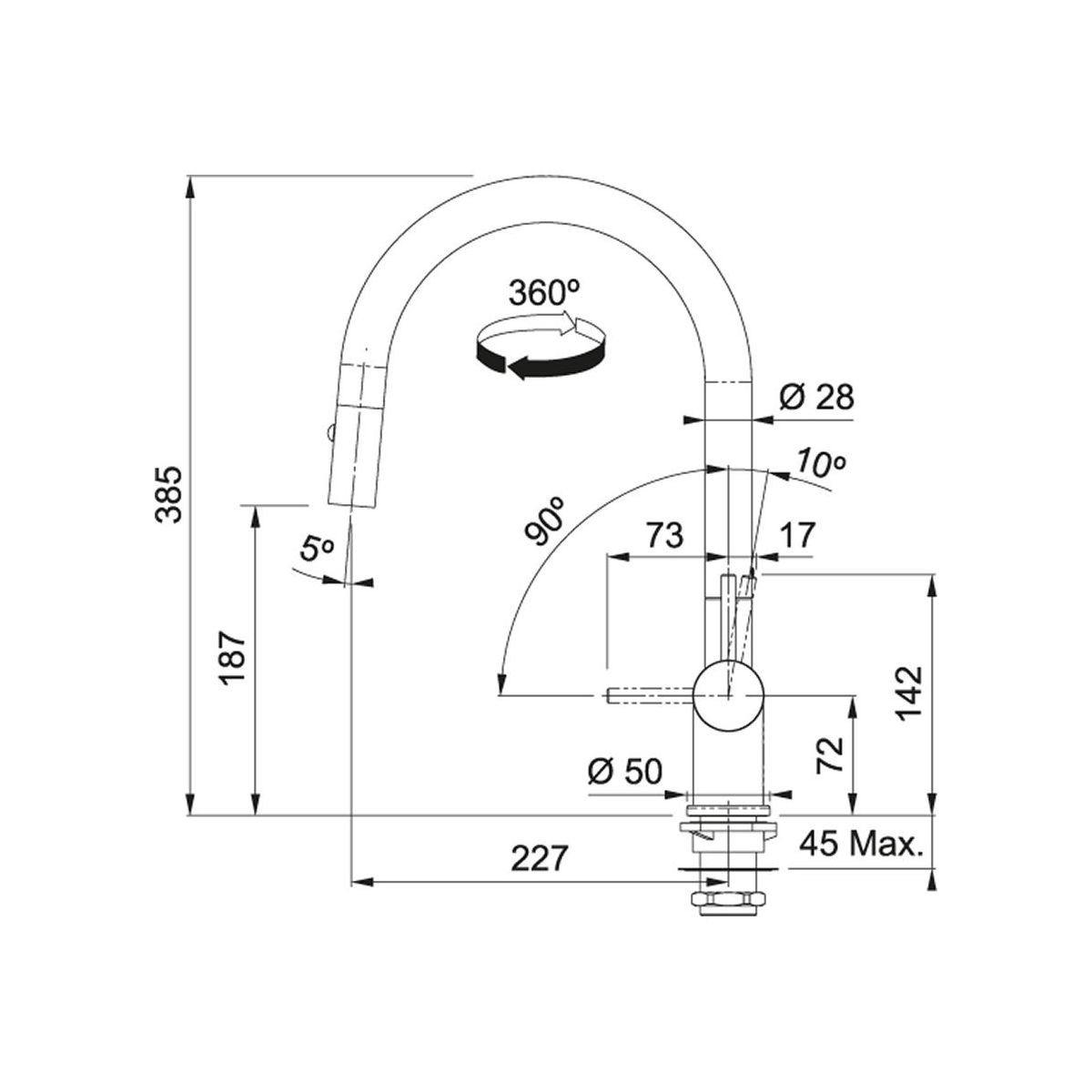 - Länge des ausziehbaren Auslaufs 1800 mm