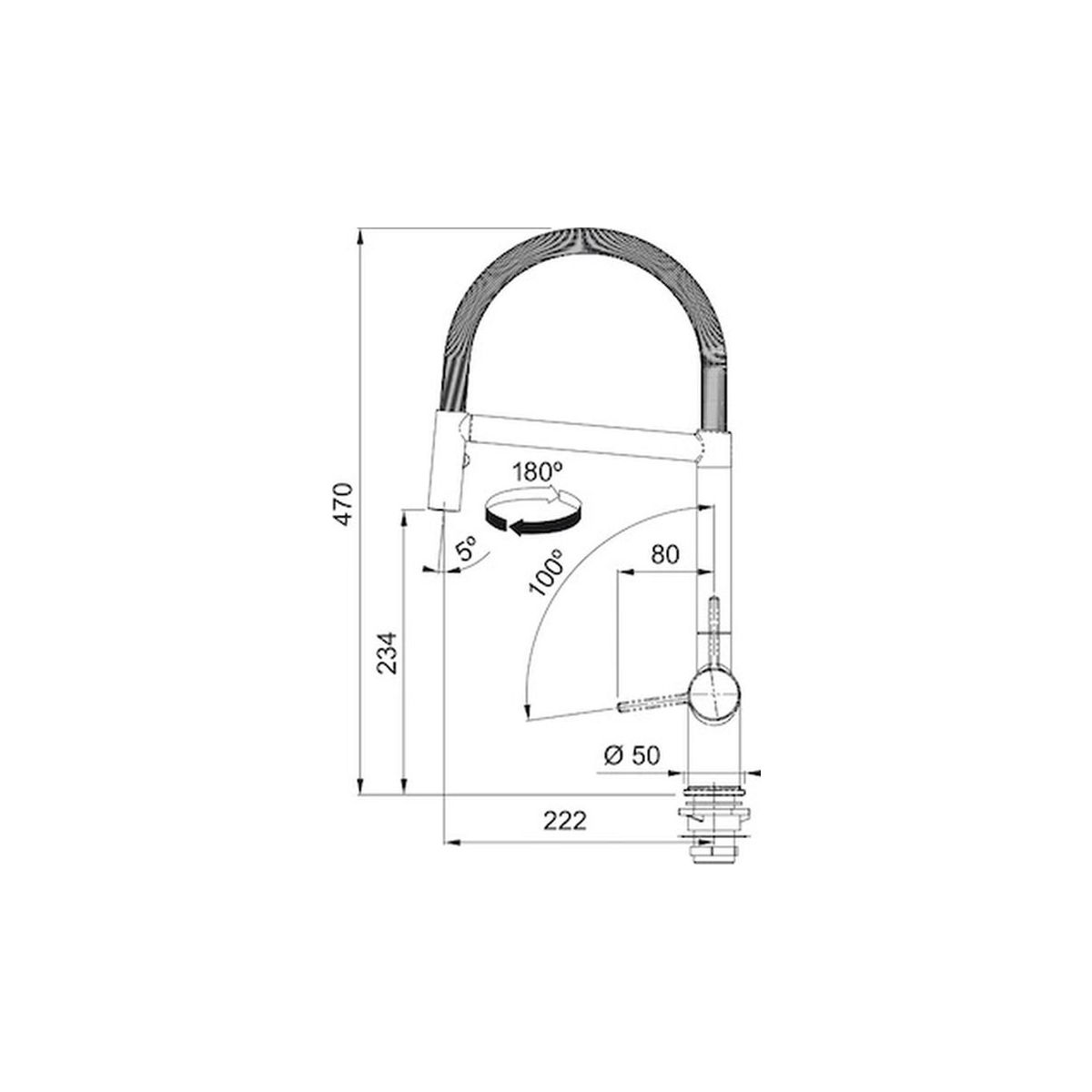- schwenkbarer Auslauf mit einem Schwenkwinkel von 180º
