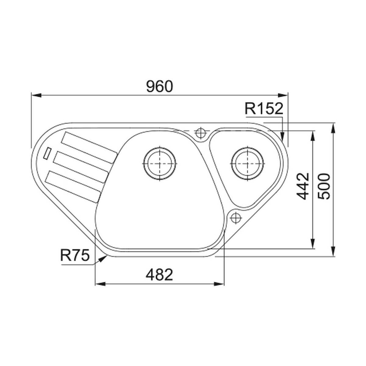 - Abmessungen der Spüle: 96 x 50 cm