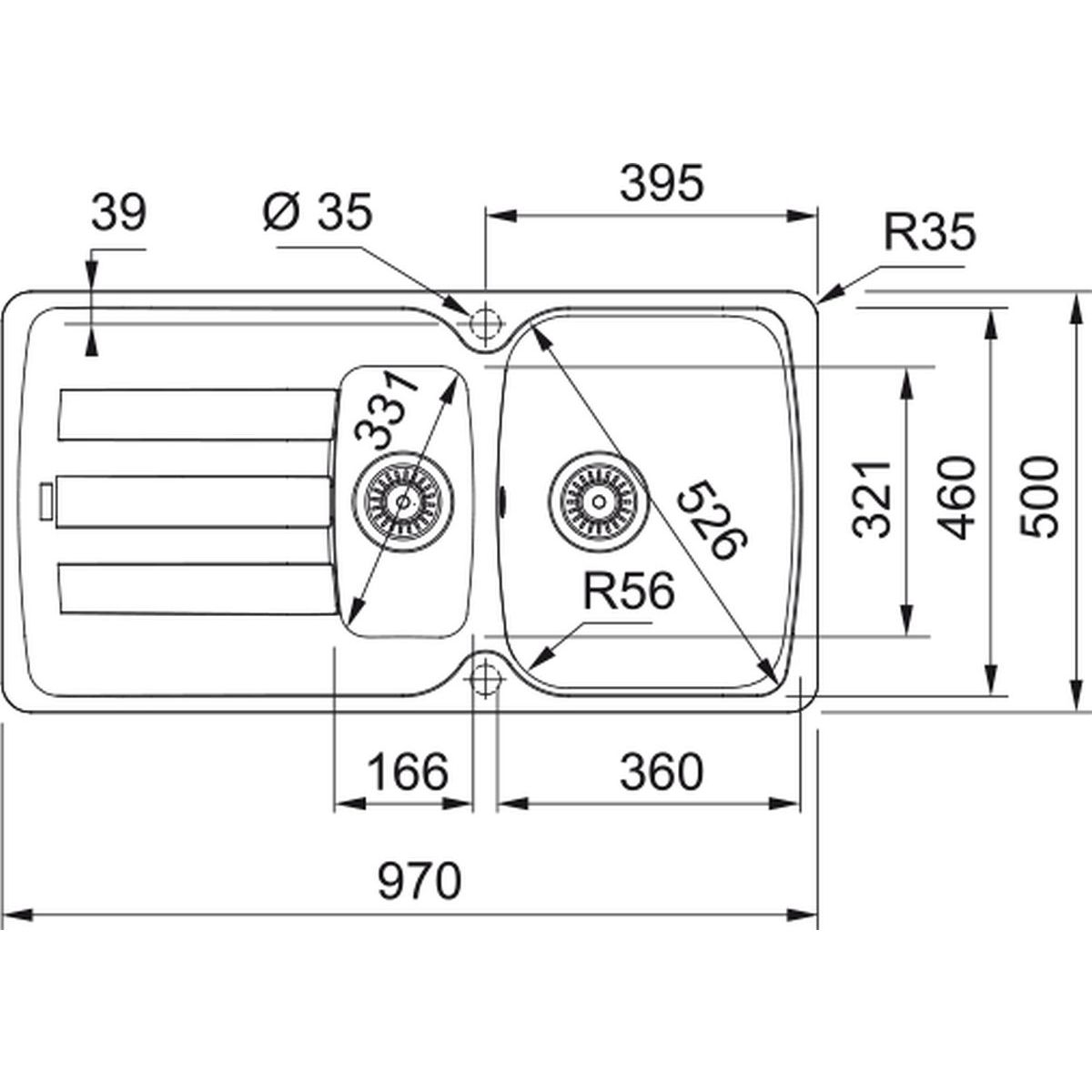 - 2 vorgebohrte Löcher für die Armatur