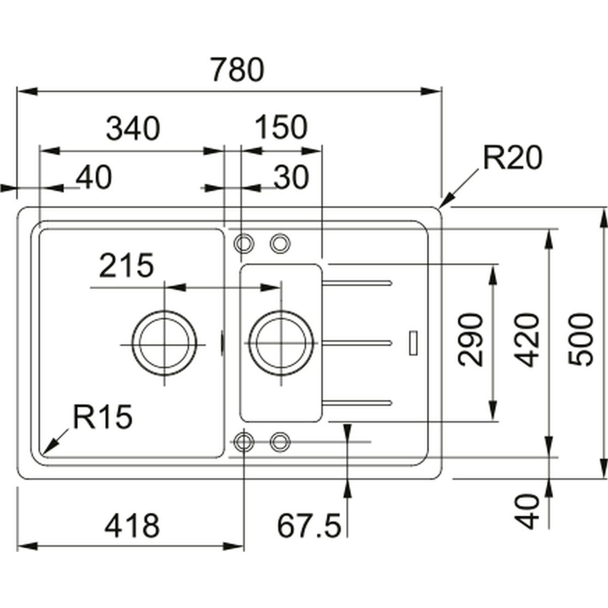 Franke Basis granitspüle 78x50 cm schwarz 114.0693.555