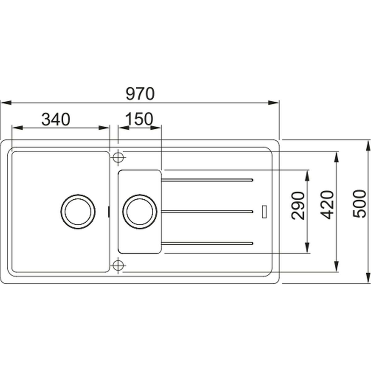 - Abmessungen der Spüle: 97 x 50 cm