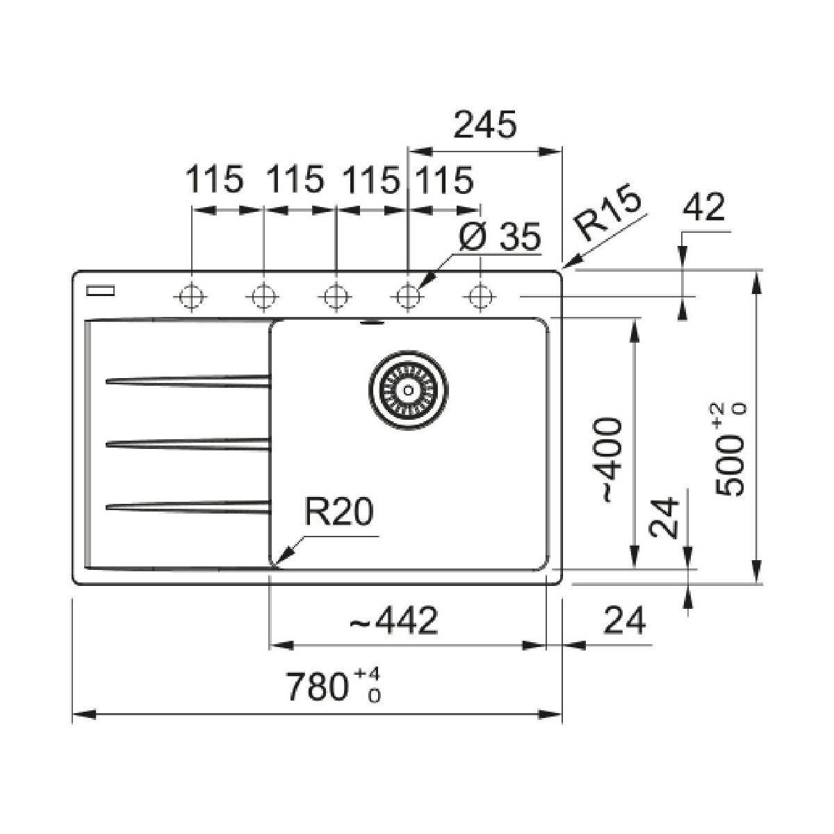 - Anzahl der Abtropfflächen: 1