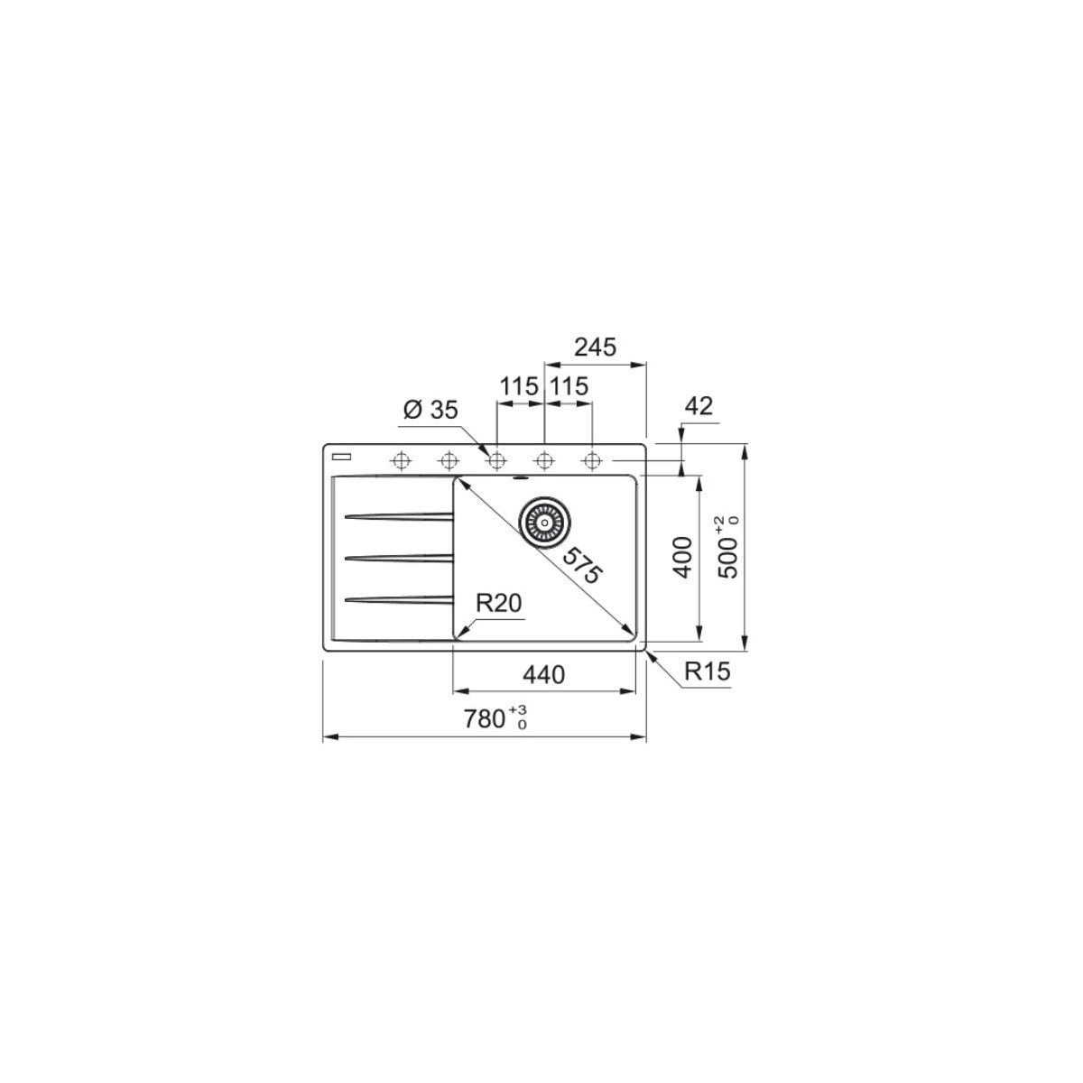 - Abtropffläche auf der linken Seite