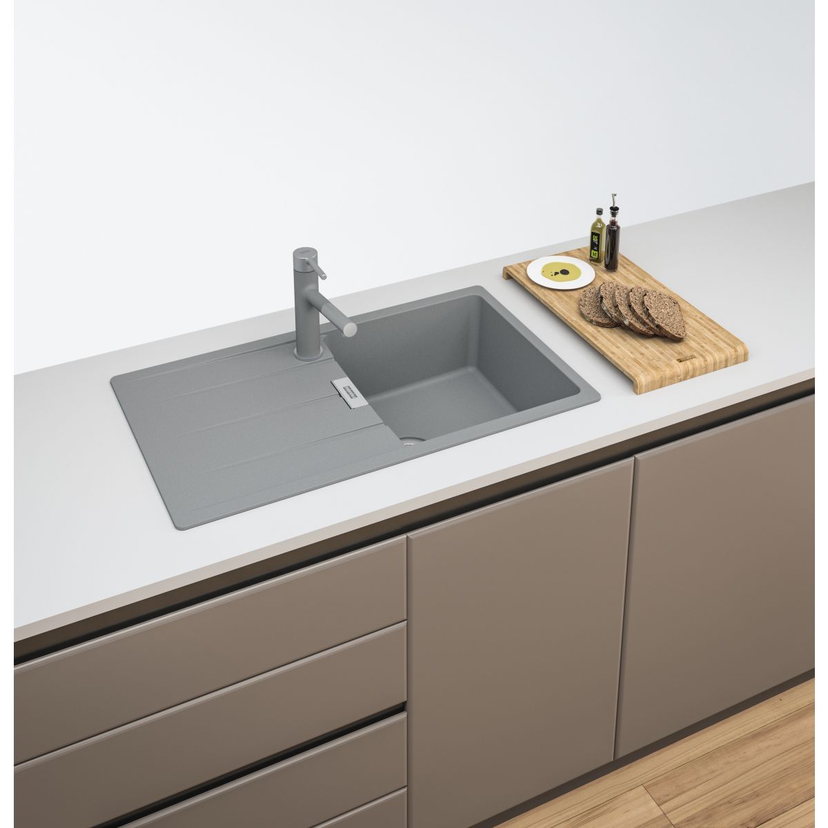 Fragranite-Spülen sind die perfekte Kombination aus Eleganz, Langlebigkeit und Komfort. Dank eines Anteils von 80 % natürlichem Quarz fühlt sich die Oberfläche angenehm an und ist gleichzeitig widerstandsfähig gegen alltägliche Herausforderungen – darunter Flecken, Kratzer und kurzzeitige Einwirkung hoher Temperaturen. Franke Granitspülen zeichnen sich durch eine außergewöhnliche Widerstandsfähigkeit gegen mechanische Beschädigungen aus, was sie zur idealen Wahl für stark frequentierte Küchen macht. Dank ihrer besonders glatten Struktur sind Fragranite-Spülen leicht zu reinigen und hygienisch zu pflegen. Das Material hemmt auf natürliche Weise das Wachstum von Bakterien und Mikroorganismen, sodass Franke-Spülen hohen Hygienestandards entsprechen. Darüber hinaus sorgt ihre Langlebigkeit dafür, dass sie viele Jahre lang ihr ästhetisches Aussehen behalten, was sie zur perfekten Wahl für jede moderne Küche macht. Zuverlässige Hygiene Franke-Spülbecken sind eine Lösung, die Pflegeleichtigkeit mit außergewöhnlicher Hygiene verbindet. Dank ihrer glatten Oberfläche, die das Wachstum von Bakterien und Mikroorganismen auf natürliche Weise hemmt, sind sie die ideale Wahl für moderne Küchen und gewährleisten Sauberkeit und Sicherheit bei der Verwendung.