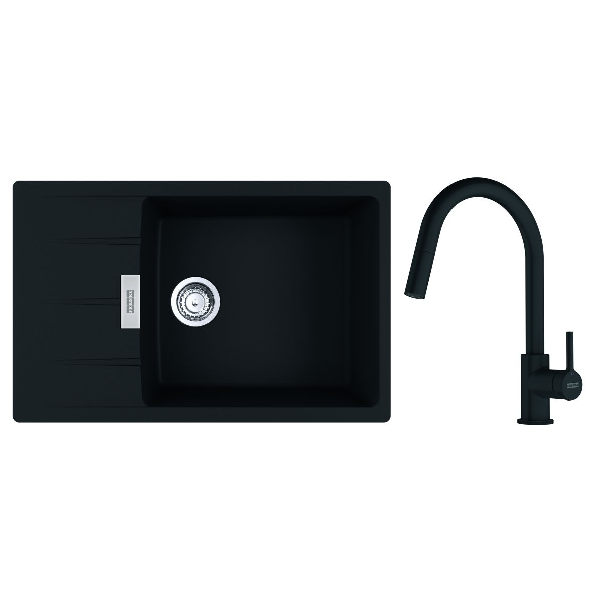 Franke Centro Waschbecken mit Wasserhahn schwarz/schwarz 1140.733.329