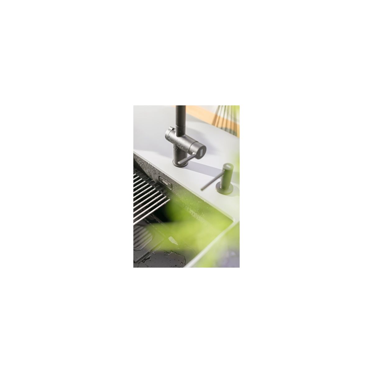 Rechteckiger, verdeckter Überlauf in Mattschwarz für KNG-Spülbecken. Der verdeckte Überlauf ist ein dekoratives Element in Spülbecken, erleichtert aber auch die Reinigung.