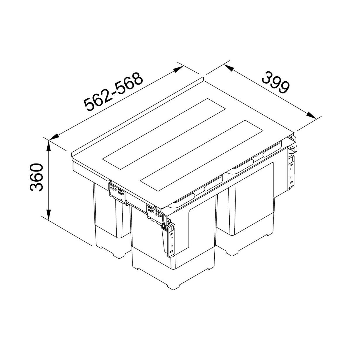 - Bei der Montage des Sortierers in einem Spülenschrank muss eine Universalverlängerung zusätzlich erworben werden