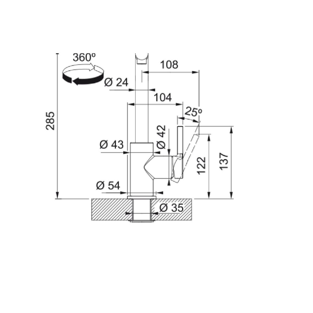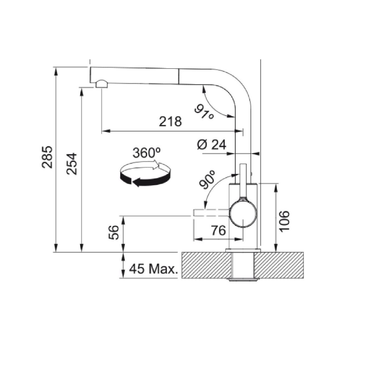 - Schwenkbereich des Auslaufs 360°