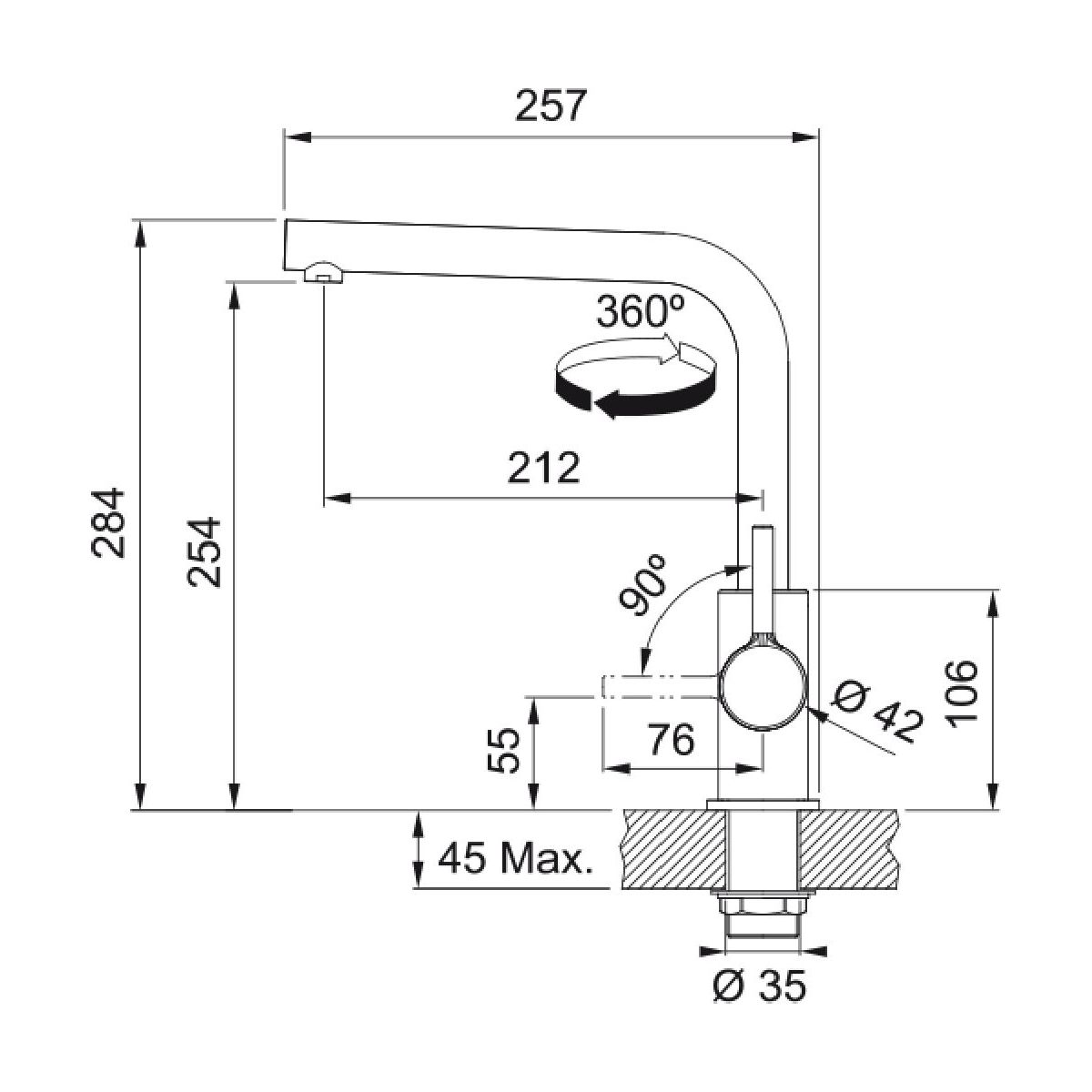 - Schwenkbereich des Auslaufs: 360°
