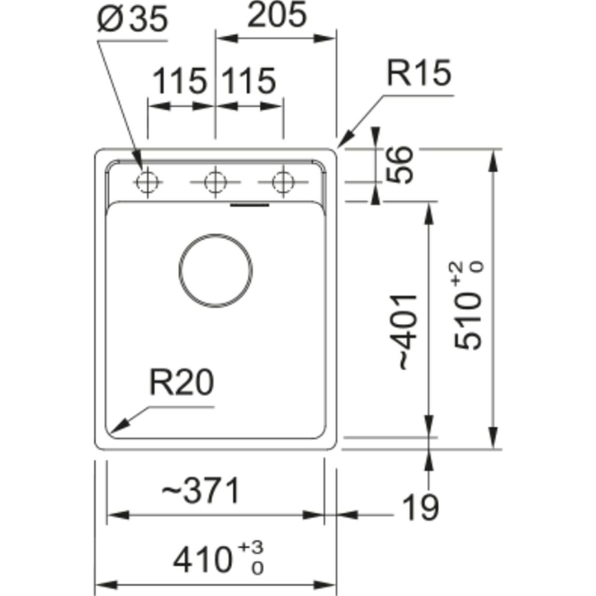 - Abmessungen der Spüle: 41 x 51 cm