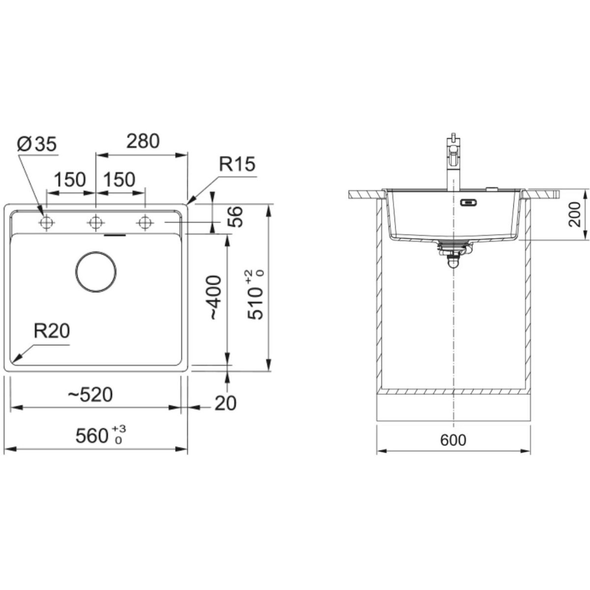 Franke Maris granitspüle 56x51 cm schwarz 114.0693.516