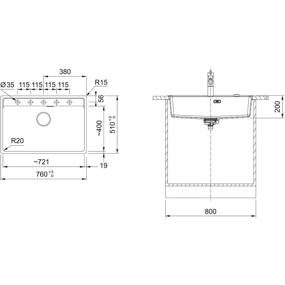 - Anzahl der Bohrungen für die Armatur: 5 vorgefräst