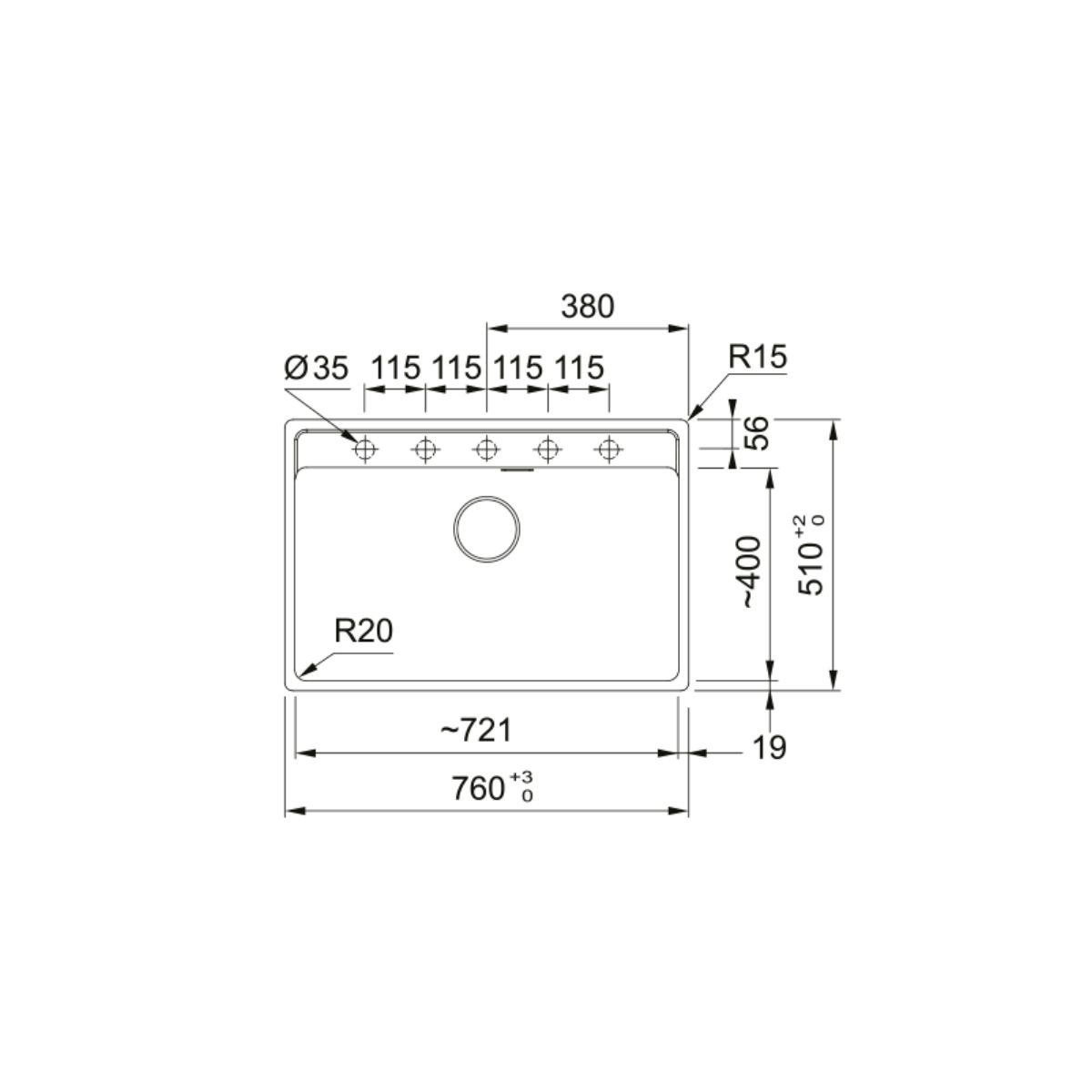 - Anzahl der vorgefrästen Löcher für die Armatur: 5