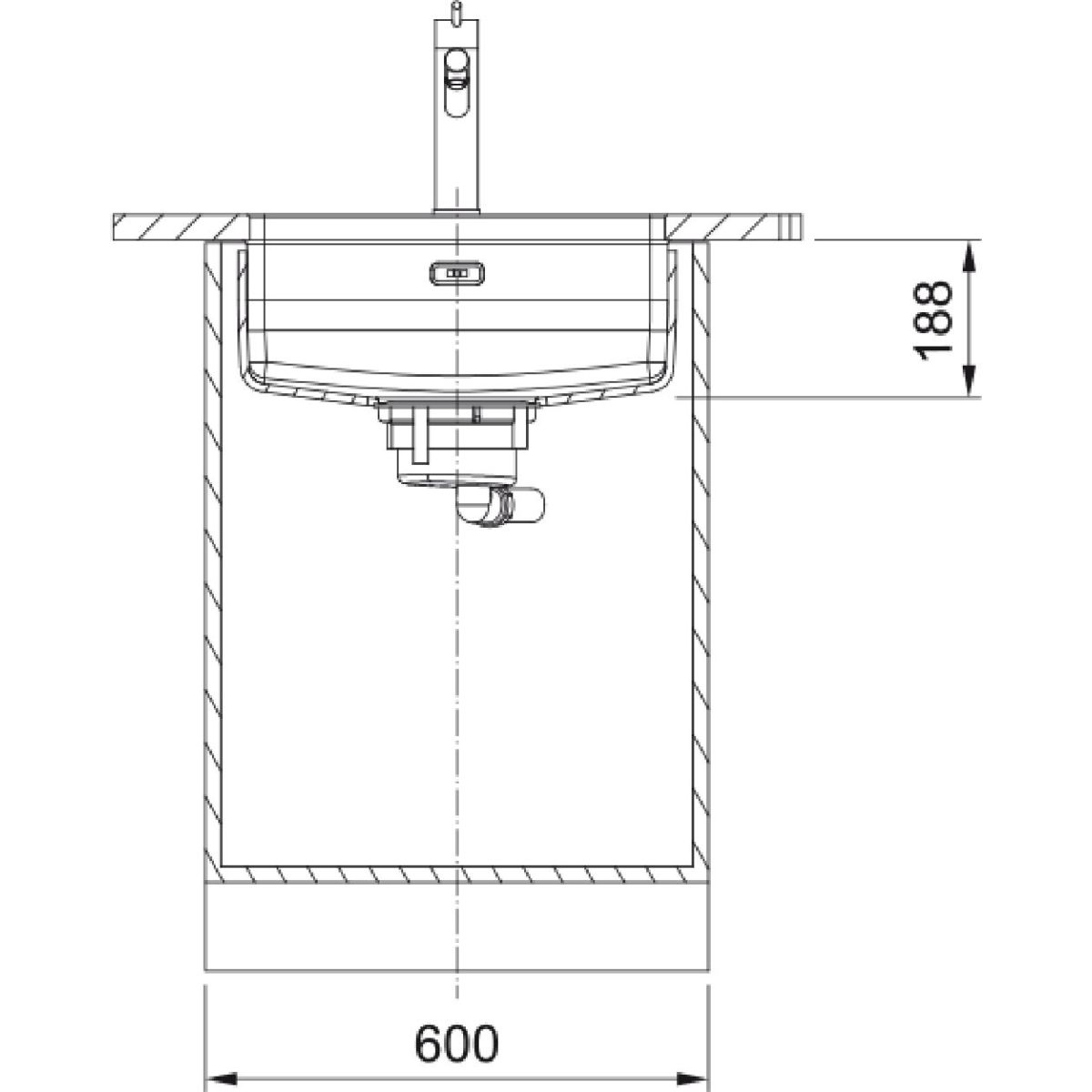 - Mindestbreite des Unterbaus: 60 cm