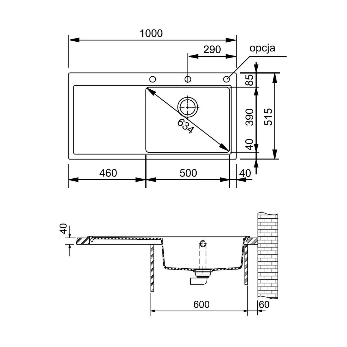 - Becken auf der rechten Seite, Abtropffläche auf der linken Seite