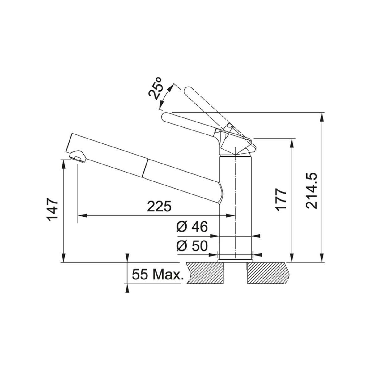- Drehbarer Auslauf mit einem Drehwinkel von 120°