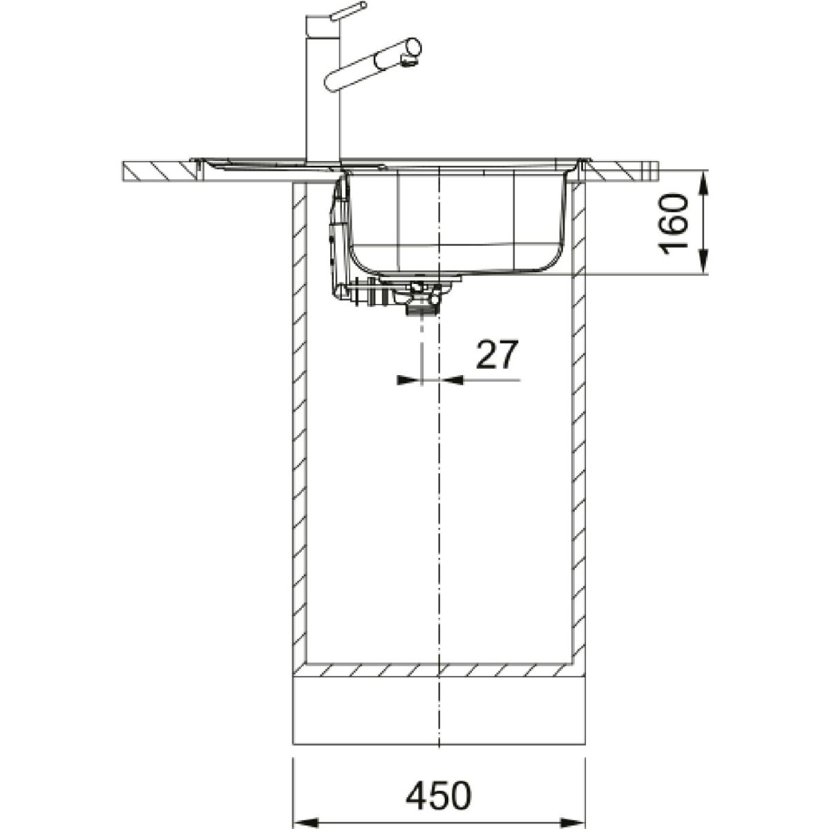 - Mindestbreite des Unterbaus 45 cm
