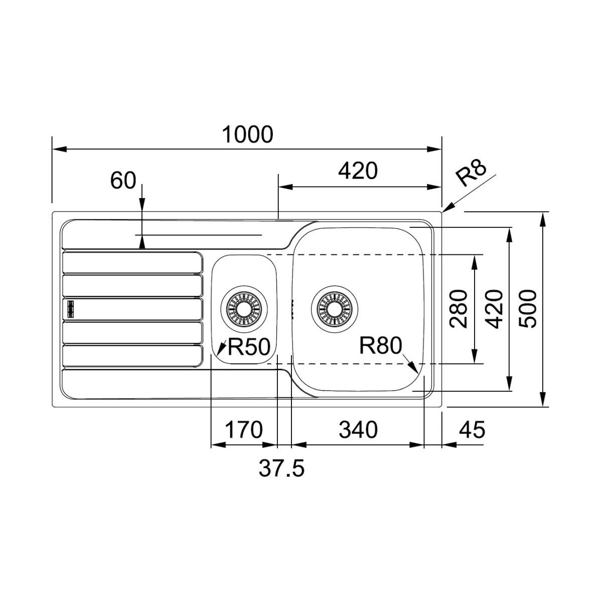 Franke Spark stahlspüle 100x50 cm 101.0497.695