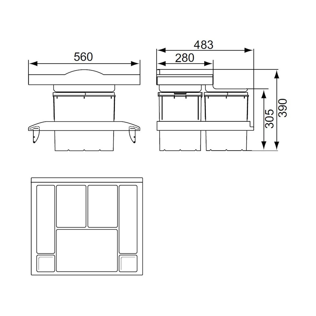 - 2 Behälter mit einem Fassungsvermögen von 8 Litern, 1 Behälter mit einem Fassungsvermögen von 18 Litern