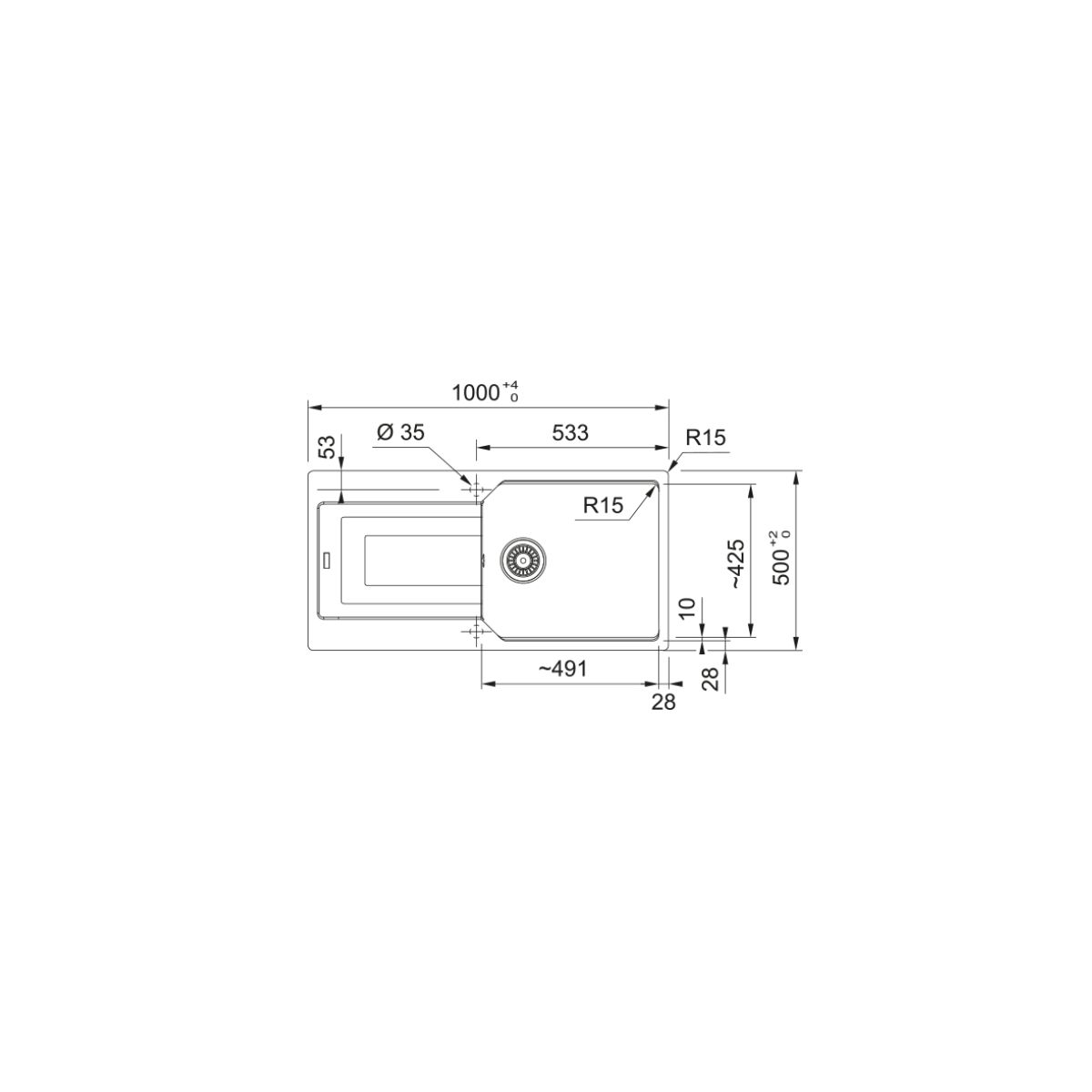 - Anzahl der Löcher für die Armatur: 2 - vorgefräst