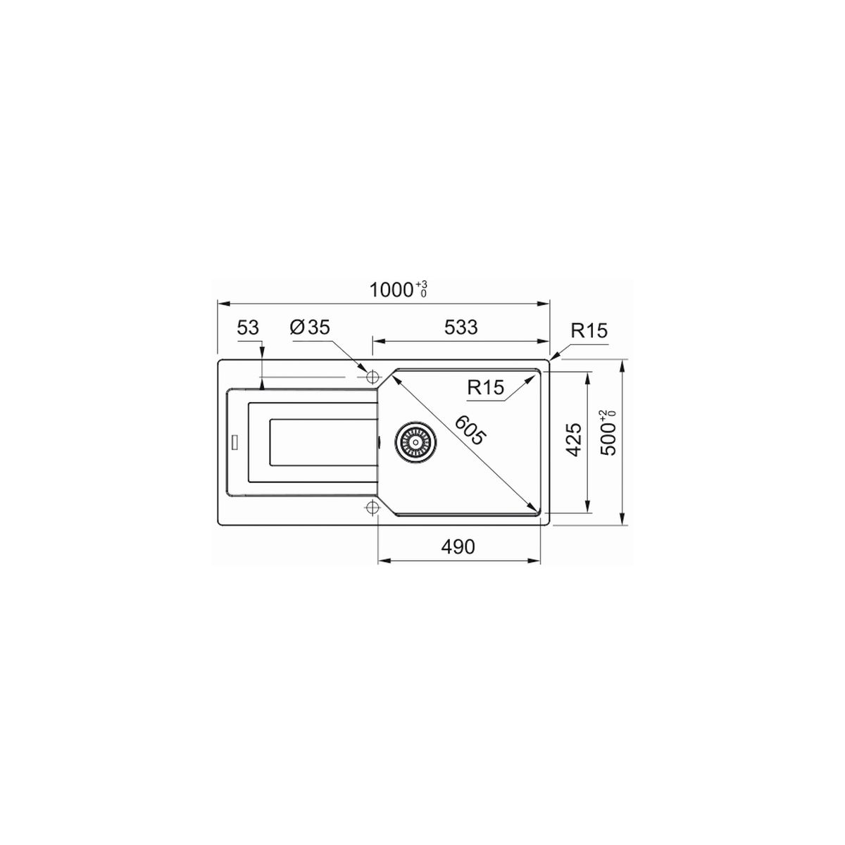- 2 vorgefräste Löcher für Armaturen