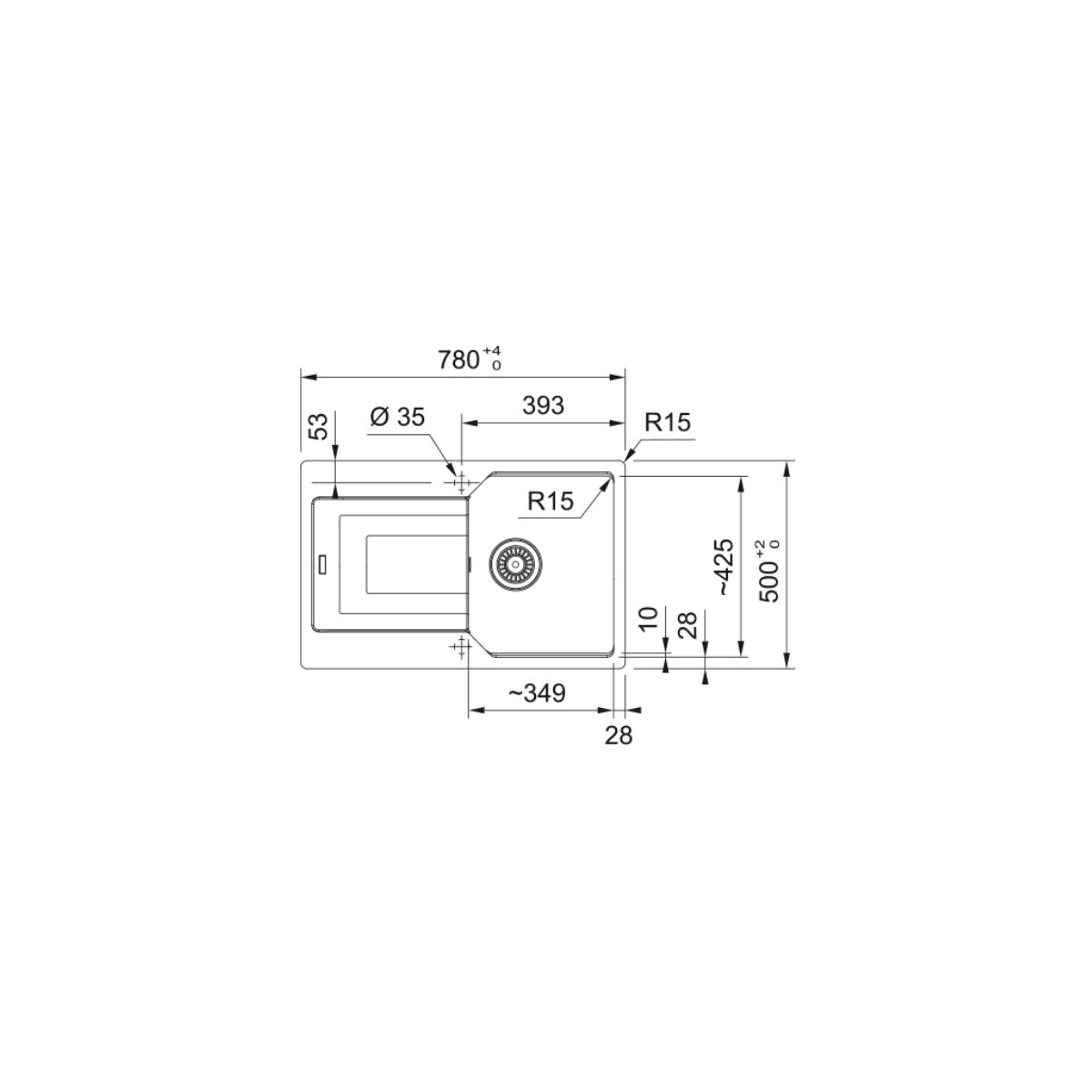 - Anzahl der Löcher für die Armatur: 2 - vorgefräst