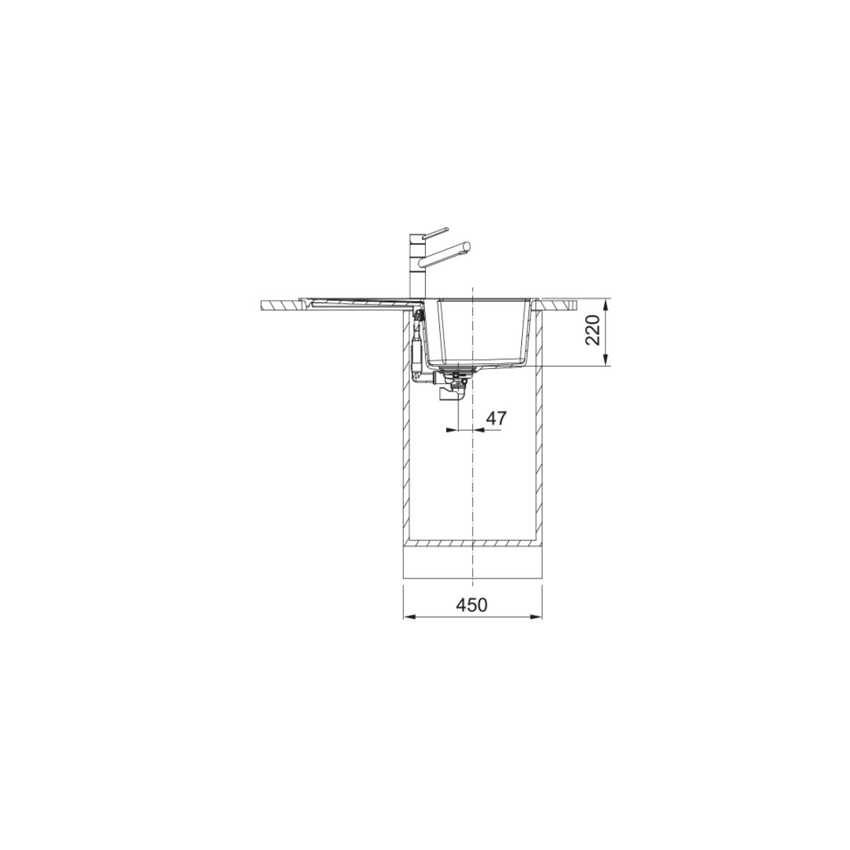 - Min. Breite des Unterbaus 45 cm