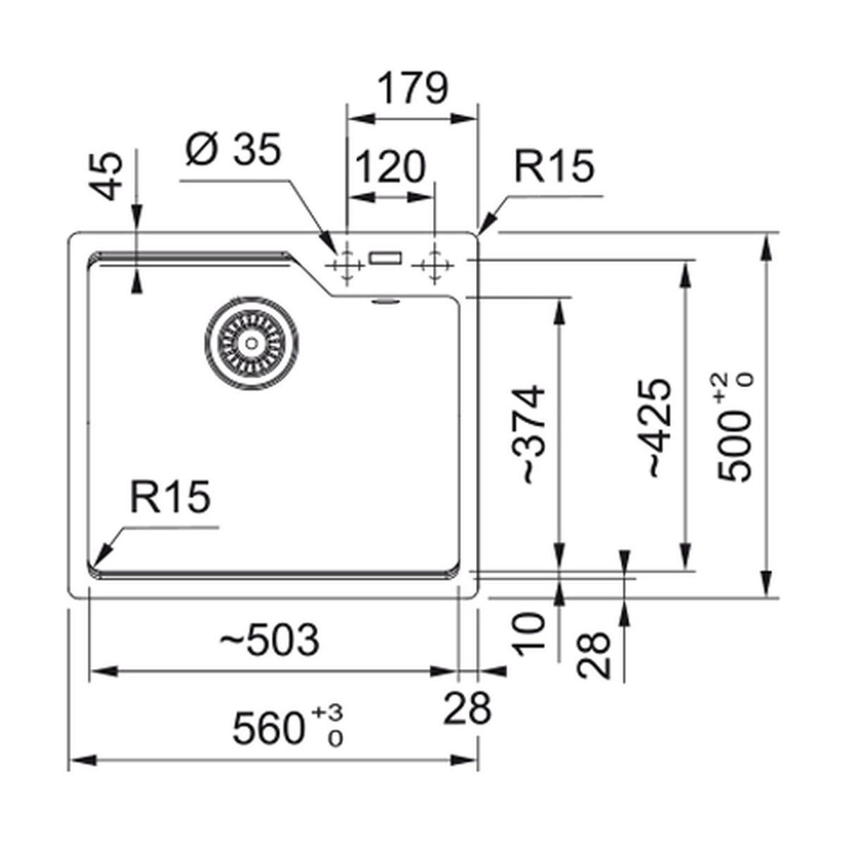 Franke Urban Granitspüle mit Abtropfeinsatz 56x50 cm schwarz 114.0741.982