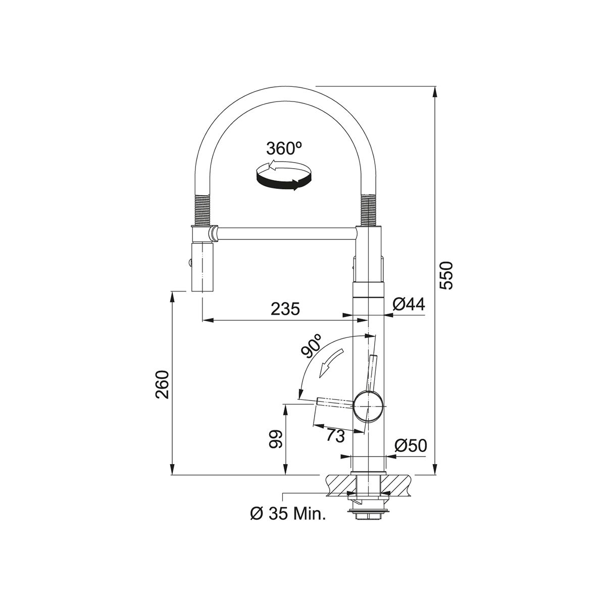 - 360-Grad-Drehung des Auslaufs