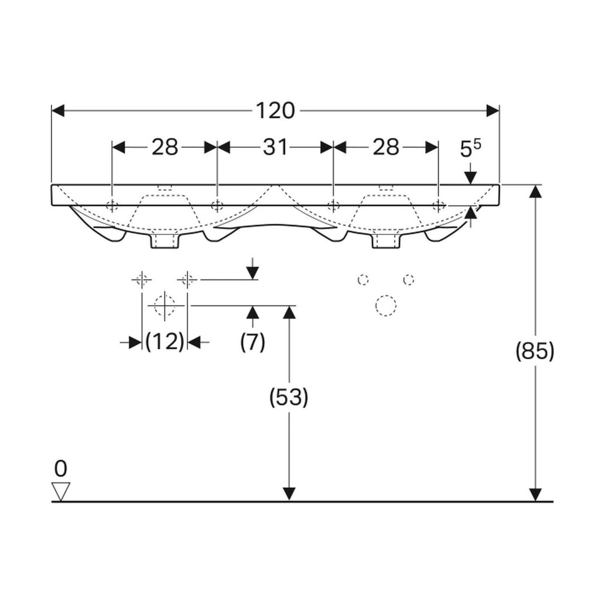 Geberit Acanto Waschbecken 120x48 cm rechteckig Möbel weiß 500.627.01.8