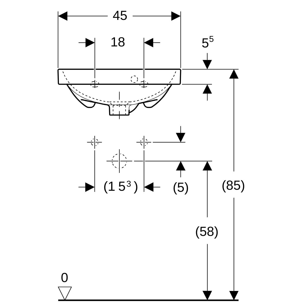 Geberit Acanto Waschbecken 45x38 cm rechteckig Klassisch-Möbel-Aufsatzwaschbecken weiß 500.636.01.2