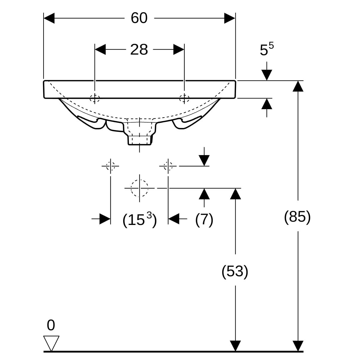 Geberit Acanto Waschbecken 60x42 cm rechteckig Klassisch-Möbel-Einbauwaschbecken weiß 500.631.01.2
