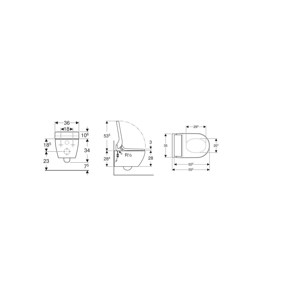 Die Toilette bietet eine Reihe von Annehmlichkeiten: beheizbarer Sitz, Warmlufttrocknung, Geruchsabsaugung und leise SoftOpening-Funktion. Die Steuerung erfolgt über eine Fernbedienung, die Geberit Home App oder manuell, wobei drei Benutzerprofile gespeichert werden können. Das Anwesenheitserkennungssystem aktiviert die Funktionen automatisch und sorgt so für Komfort im Alltag.
