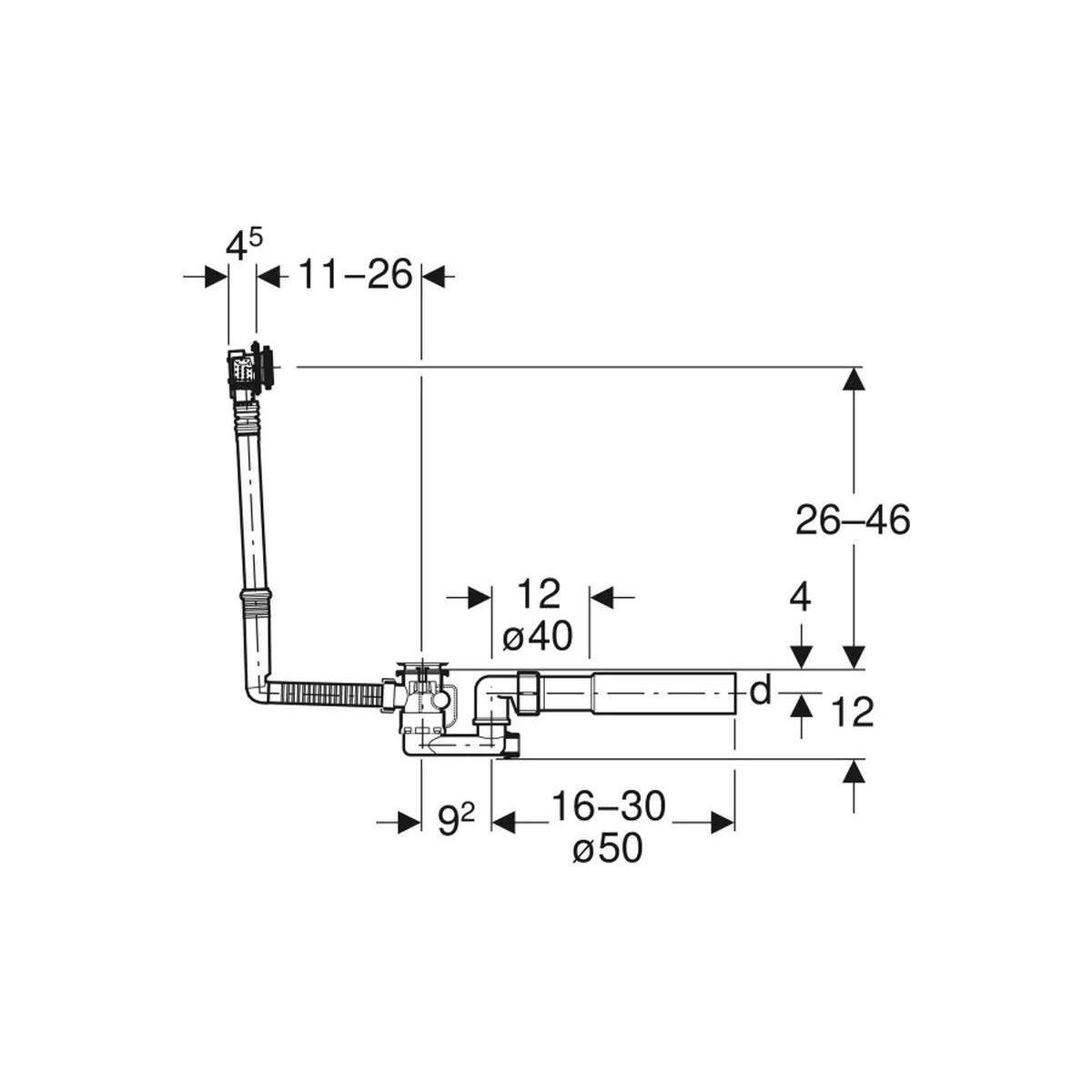 - Ablauf- und Überlaufgarnitur für Geberit Unterputzarmaturen, d52, Länge 26 cm, mit Fertigset