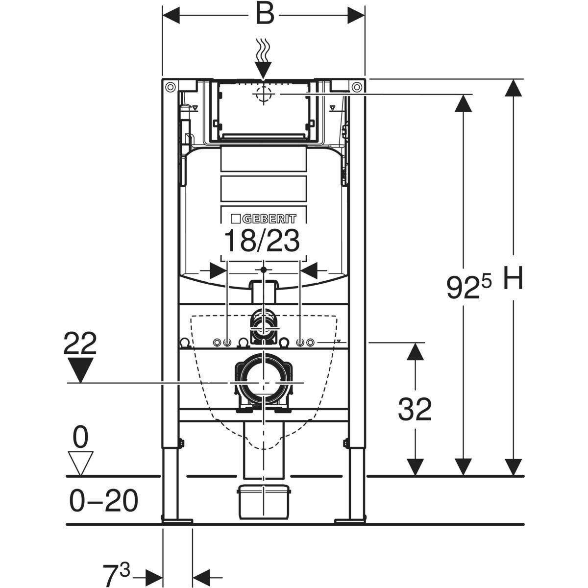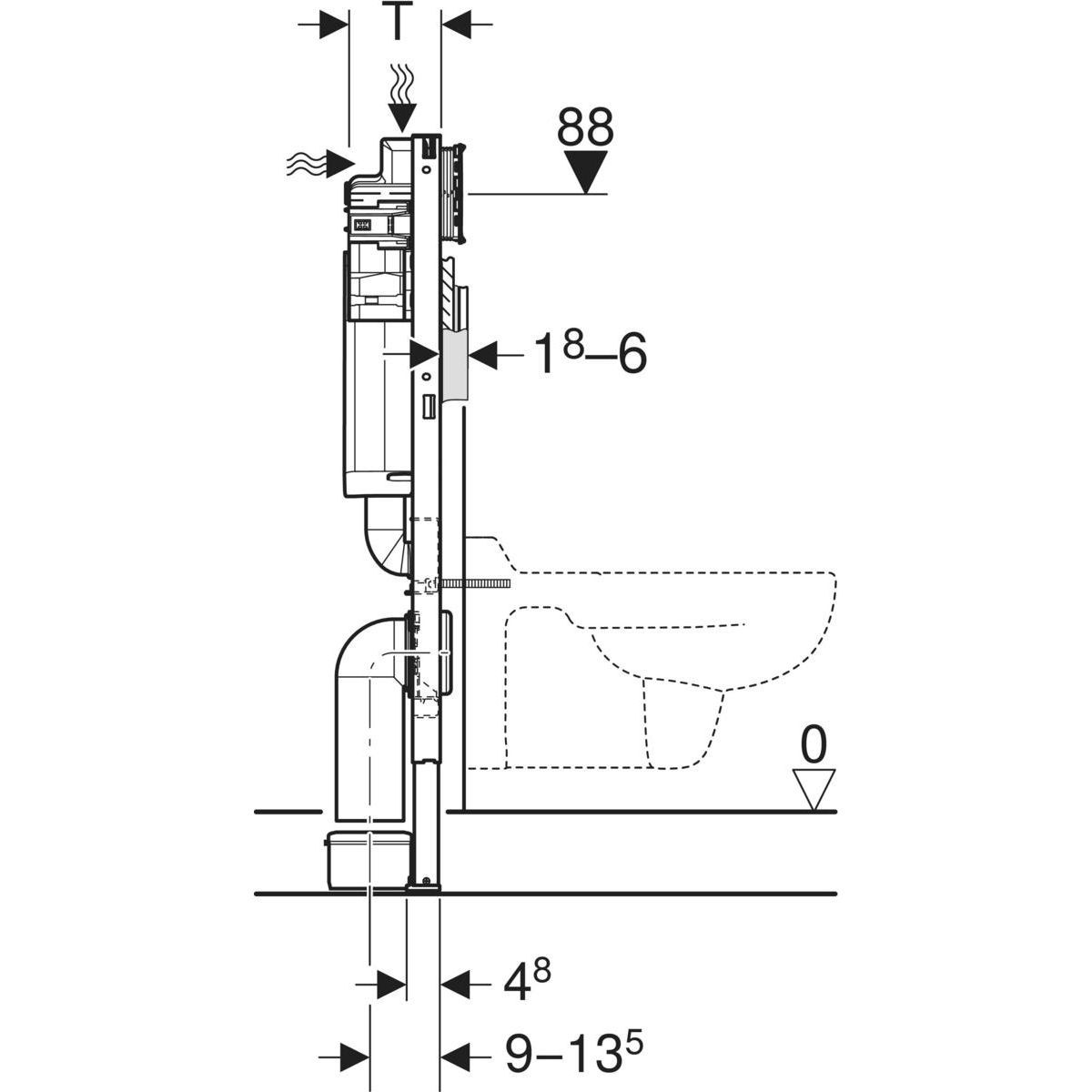 - Rahmen für Wand-WC-Becken mit Anschlussmaßen gemäß EN 33 und einem Auszug von bis zu 70 cm