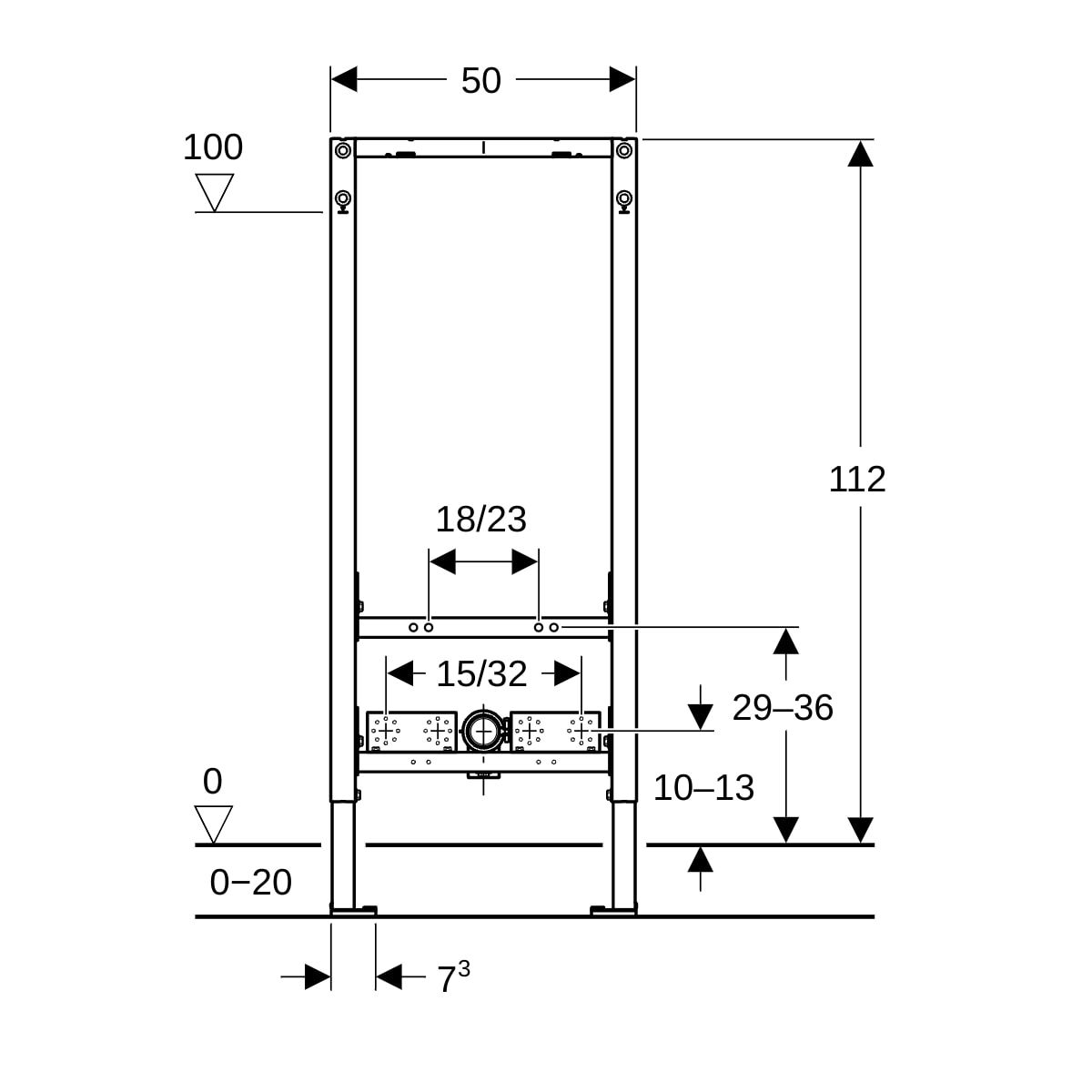 - Abstand der Befestigungslöcher des Bidets 18 cm oder 23 cm
