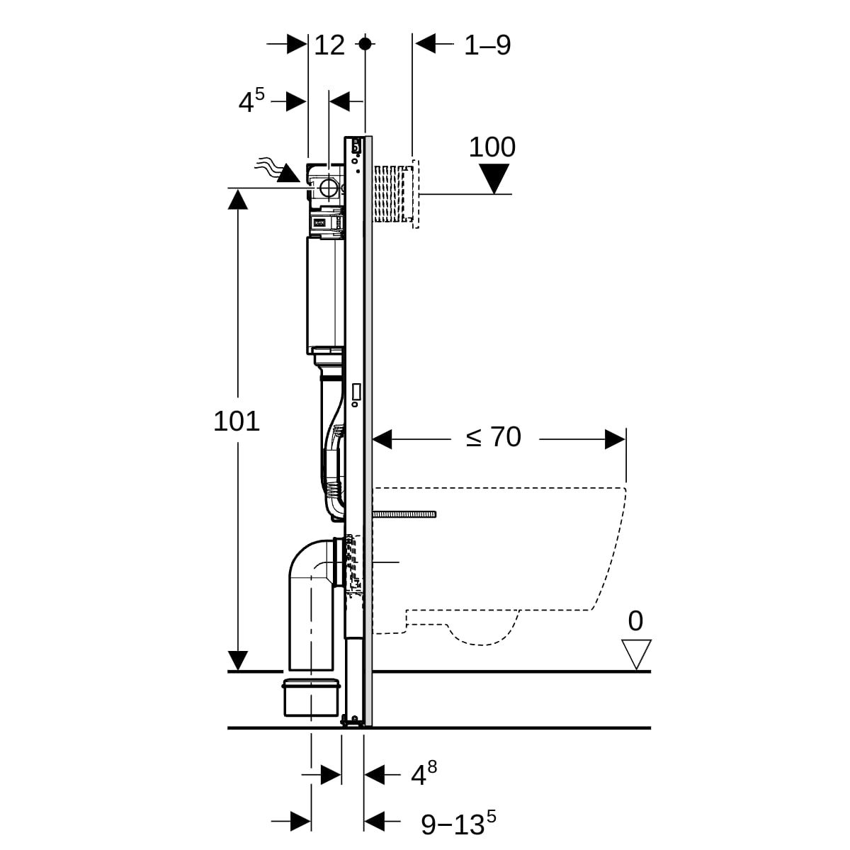- Einstellbereich für Wassersparspülung 3–4 l