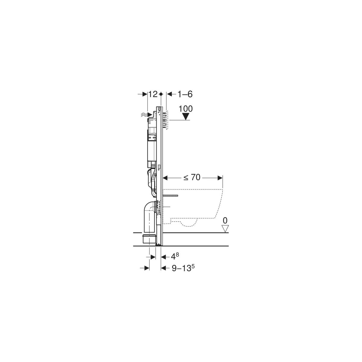 - Rahmen für Wand-WC-Becken mit Anschlussmaßen gemäß EN 33 und einem Auszug von bis zu 70 cm