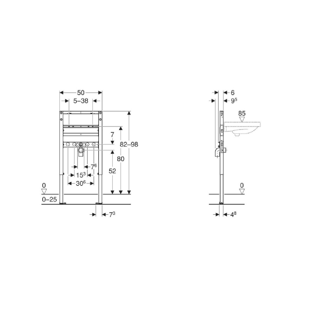 Der Geberit Duofix-Rahmen ist 98 cm hoch und für die Montage von Waschtischen in Leichtbaukonstruktionen, z. B. aus Gipskartonplatten, vorgesehen. Der Rahmen besteht aus pulverbeschichtetem Stahl, der ihn vor Korrosion schützt und eine lange Lebensdauer unter den anspruchsvollen Bedingungen im Badezimmer garantiert.
