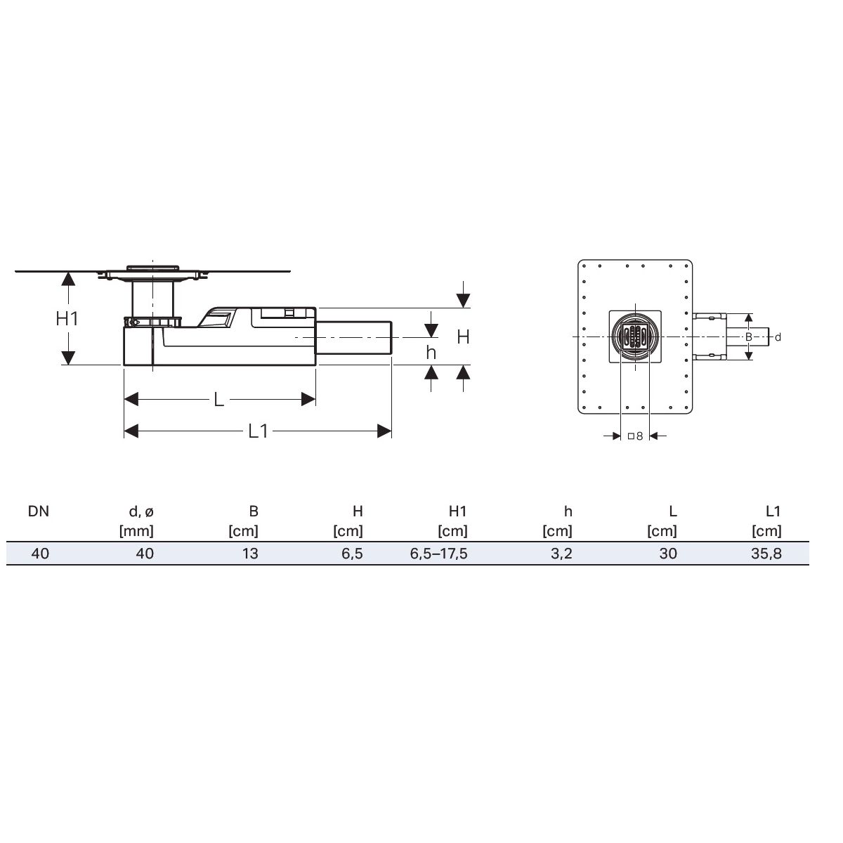 - im Gegensatz zu den Anforderungen der Norm EN 1253 beträgt die Siphonhöhe nur 30 mm