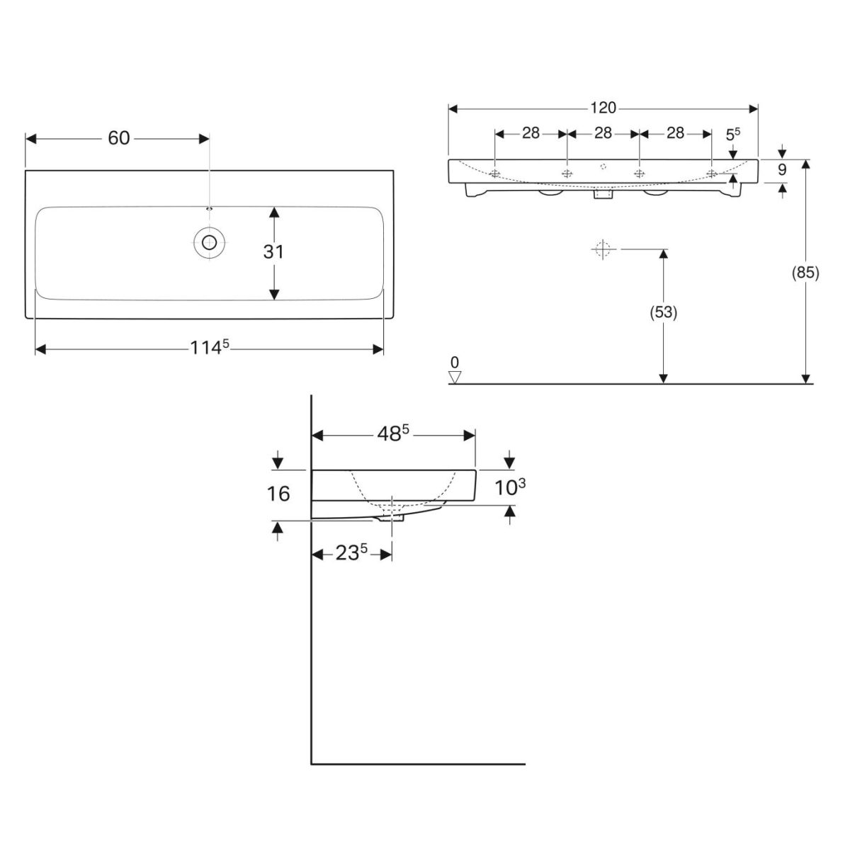 Geberit iCon Waschbecken 120x48 cm rechteckig Möbel weiß 124025600